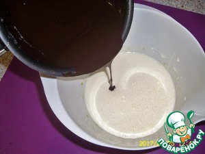 Влила тонкой струйкой шоколадное масло в сахарно-яичную смесь.