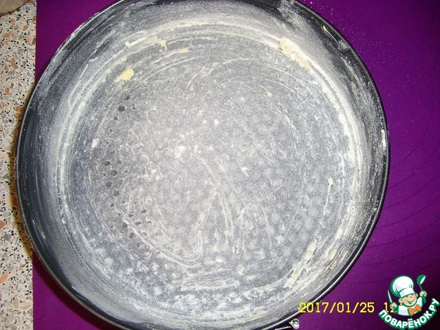 Далее поверхность формы припорошила немного мукой. Профессионалы называют это "французской рубашкой".