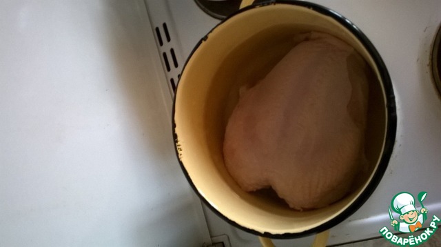 Куриную грудку отварить до готовности.
