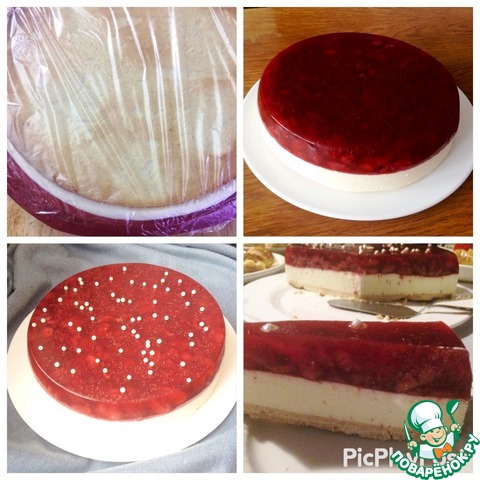 Этот торт готовила на Рождество. Очень не хотелось что-то сложное готовить, т. к. праздники уже затянулись и готовить надоело. Но, какой праздник без десерта. Проверила свой холодильник на наличие в нем продуктов, из которых можно было бы что-то придумать. В итоге получился вот такой муссовый торт с клубничным желе.