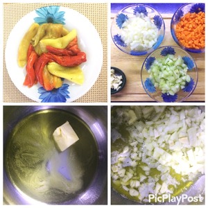 Осенью я запекала перец, потом его замораживала. Поэтому, для того чтобы приготовить этот супчик, я просто вынула порцию замороженных печеных перцев, разморозила их и приступила к готовке супа. У кого такой заготовки нет, тогда придется перцы выпекать, чистить, а потом использовать по назначению.