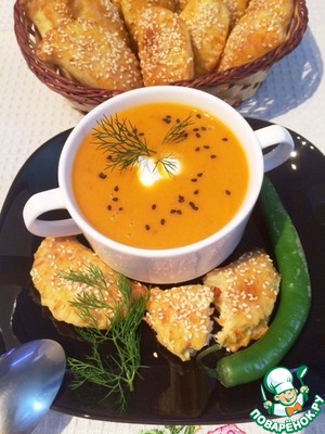 Я подавала с ложкой сметаны, посыпала немного черным кунжутом, а вместо сухариков -сырные пирожки.