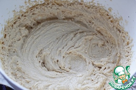 Взбить миксером две минуты на средней скорости и затем две на высокой.