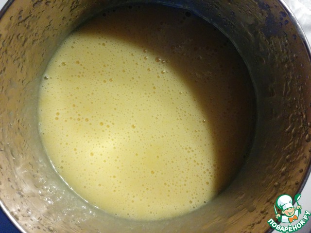Яйца комнатной температуры взбиваем до увеличения в объеме в два раза, добавляем сахар и продолжаем взбивать до получения гладкой массы.