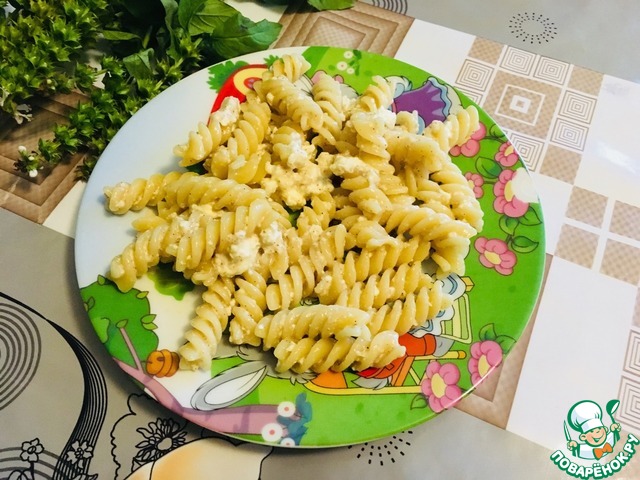Любые макаронные изделия отварить в подсоленной воде, слить воду, отцедить и дать стечь.