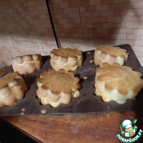 Достаем горячие булочки из духовки и вынимаем из формочек.