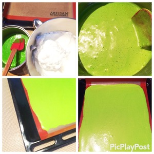 Красим массу в зеленый цвет. У меня AmeriColor Electric Green. Цвет бисквита будет светлее, чем эта часть теста, поэтому добавляем красителя больше.