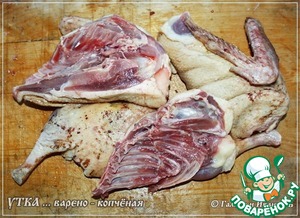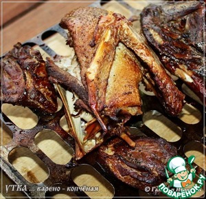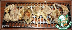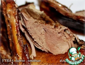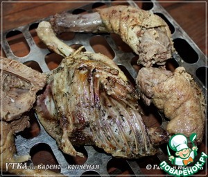 Итак, снова утка. На этот раз попытка, не более того, попробовать освоить процесс копчения. Вот такой получился … результат.