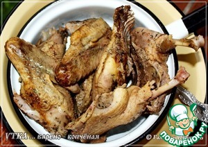 Рецептов, вернее рекомендация по копчению птицы – утки существует немало. От совершенно простых до немыслимо навороченных. Точнее не столько навороченных, сколько невнятно и сложно описанных. И в то же время из этих описаний, усложненных, по моим ощущениям, просто от незнания предмета, непонятны простые вещи. Например, рекомендация коптить птицу 10 – 12 часов с двухступенчатым изменением температуры. Сначала 5 – 6 часов держать 50 – 70 градусов, а потом…, но так и не ясно каким способом коптить. «Горячим» или…. В общем, как и в большинстве «мудрокулинарных» источников, рецепты эти … «возьмите 100 грамм говядины, перец и соль – по вкусу, и пожарьте себе бифштекс» и, конечно, строгообязательно, красивая фотография куска зажаренного мяса.