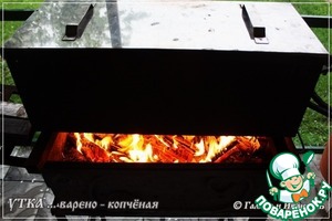 Температура нагрева и время приготовления. Тут без замечаний. Все правильно получится, если, повторюсь, щепы будет в меру. Утка пропечется и приобретет аромат и духовитость.