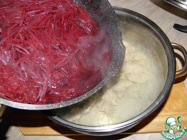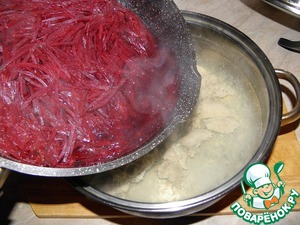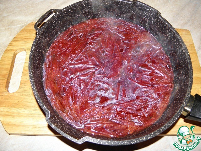 Перекладываем в него тушеную свеклу с жидкостью, даем закипеть