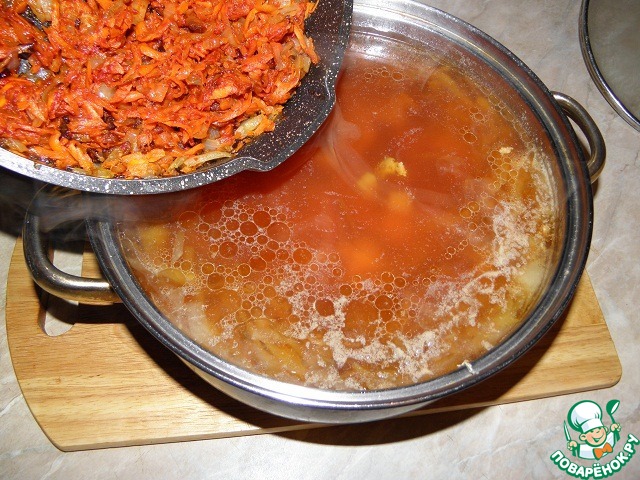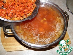 Затем добавляем зажарку на сале с луком и морковью, сахар, соль, перец, лавровый лист ( я лаврушку чуть раньше добавила) Варим до полной готовности, минут 15, выключаем и даем настояться.