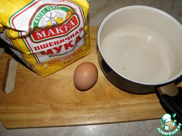 Пока борщ настаивается займемся приготовлением галушек: 60г муки, 1 яйцо, 90 мл воды