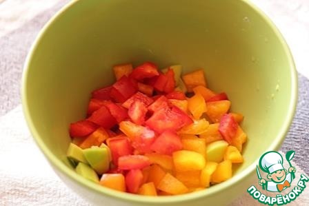 Смешать рыбу с креветками, болгарским перцем и авокадо, приправить по вкусу солью и перцем, сбрызнуть оливковым маслом.