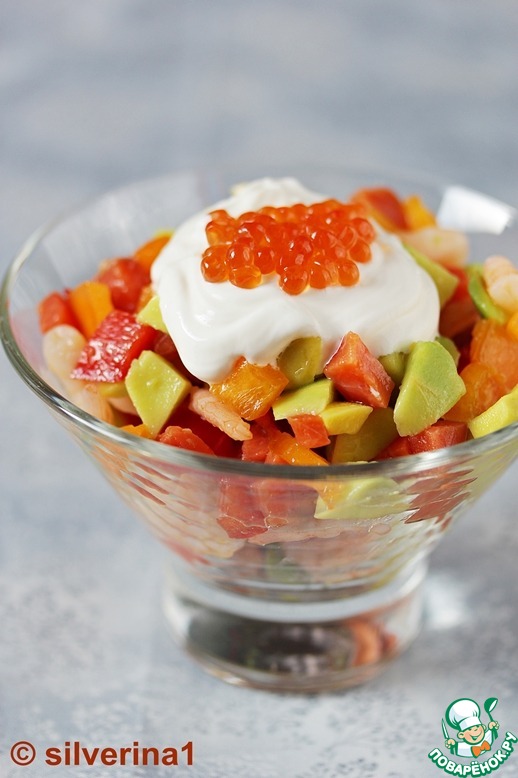 Рецепт «Салат из лосося, креветок и авокадо»: