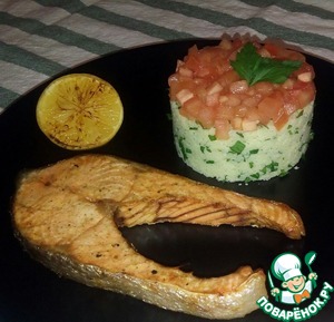 Кушать можно, как отдельное блюдо, а можно, как гарнир. Я обычно делаю кускус к рыбке. Тут у меня запечёная кета. Приятного аппетита!