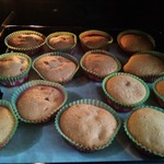 Заполнить формочки на 1/3 кексовой массой. разогреть духовку в районе 200%, выпекать минут 17- 23, не пересушить. -