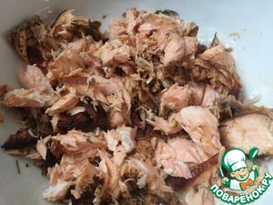 Остудите рыбу и вилкой разделите на небольшие кусочки. Какая потрясающая основа для салата!