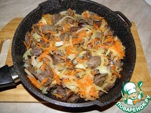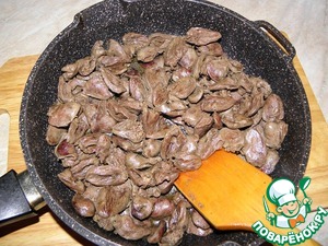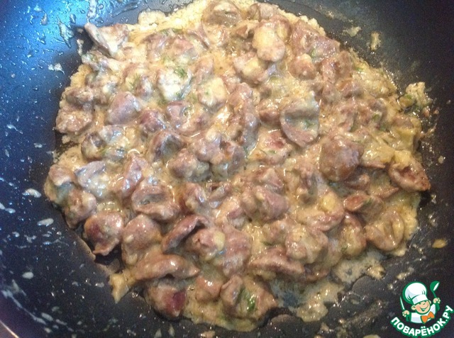 Обжарить сердечки на сливочном масле, чтобы обязательно выпарилась вода.