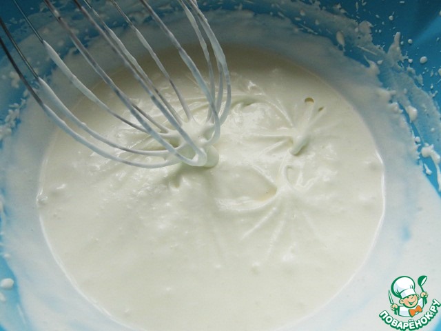 ... продолжаем дальше. Взбиваем сливки, сахарную пудру и ванильный сахар миксером начиная с маленьких оборотов и постепенно увеличивая скорость, до мягких пиков. Это тот случай когда не надо взбивать сливки в крепкую пену, а то наши пряники не пропитаются.