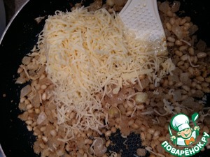 В остывшую начинку добавляем сыр и тщательно перемешиваем.