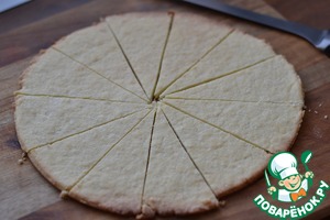 Готовый корж, еще горячий, аккуратно разрезать на 12 частей.