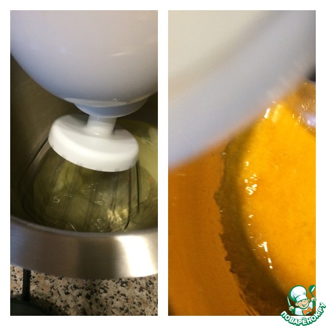 Сахар - половину в желтки, половину в белки. В белки добавить щепотку соли.