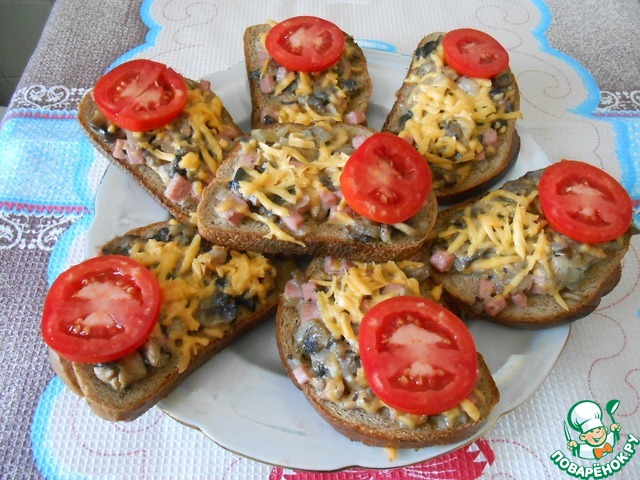 Рецепт «Горячие бутерброды с шампиньонами»:
