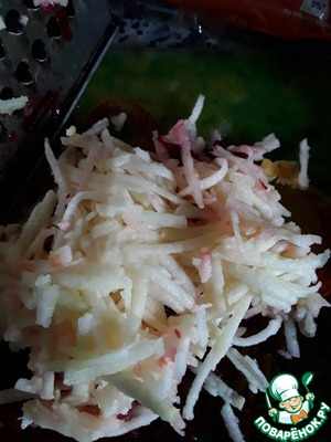 Измельчить чеснок любым удобным вам способом. Я это делала на мелкой терке.