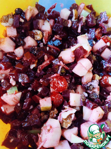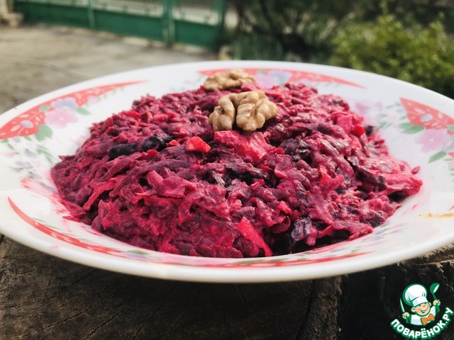 Рецепт «Салат из свеклы, орехов и сухофруктов»: