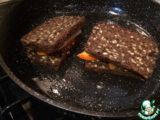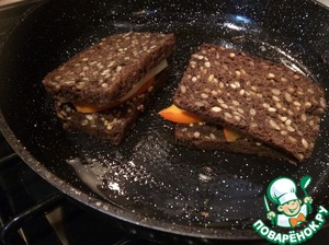 Я слегка обжариваю хлеб до корочки и потом формирую бутерброд.