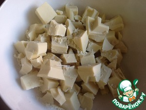Крем. Делаем очень просто: ломаем белый шоколад. Здесь маленькое отступление: найти хороший белый шоколад сложно. Я беру или в кондитерских магазинах или в Metro cash and carry их торговой марки horega. Не сочтите за рекламу, просто до этого пару раз испортила крем обычными плитками белого шоколада, вот и делюсь своим опытом.