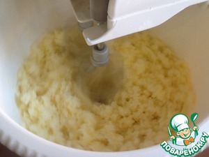 Для этого 200 г размягченного сливочного масла взобьем, постепенно всыпая 400 г сахара... Слишком сладко не будет - не пугайтесь! -