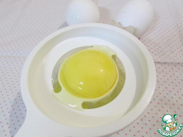 Желтки (48 грамм) взбить до бела с сахаром (100 грамм).