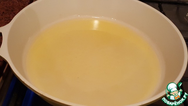 В сковороде разогреть топлёное сливочное и растительное масла.