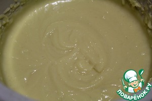 Добавить остывший крем и оставшееся сгущеное молоко.