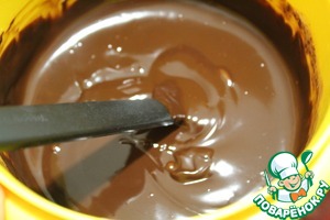 Сливки доводим до кипения и заливаем шоколад, накрыть крышкой на 5 минут, хорошо размешиваем, добавляем масло и еще раз размешиваем - должна получится не густая и не жидкая масса - если нужно, долейте еще чуть горячих сливок.