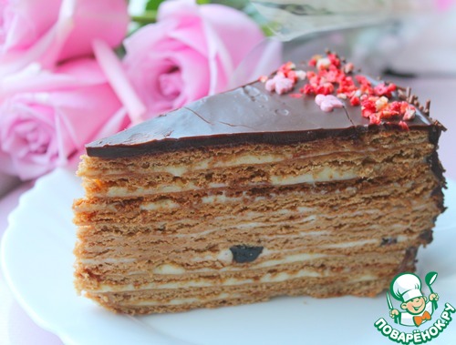 Торт делала на День Рождения любимой мамули. Ей исполнилось 77 - счастливые семерки! Делала по предпочтению ее вкуса - торт не приторный, с шоколадно-ореховым вкусом, ненавязчивым едва уловимым вкусом чернослива, сливочным кремом и сметанным кремом - они очень удачно дополняют друг друга, в меру пропитанный, не сухой. Пробуем? Именинница с удовольствием угощает!-