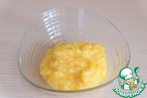 Соединить взбитые белковую и желтковую массу, добавить муку (1,5 стакана) и масляно-лимонное пюре. Смесь хорошо размешать.