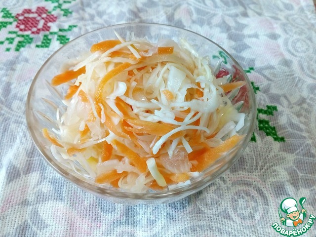 Капуста получается в меру сладкой, немного с кислинкой и хрустящей!