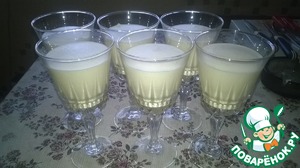 3)Во время взбивание наливаем 80 гр белого вина и продолжаем взбивать 1 минуту. Готовый мусс разольем по бокалам.