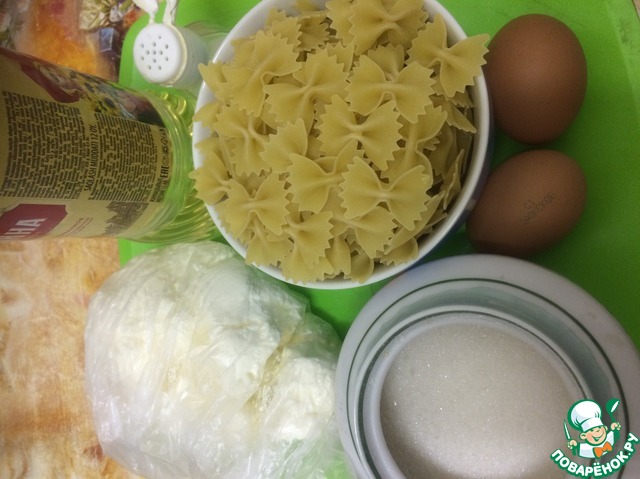 Ингредиенты для «Творожная запеканка с бантиками»: