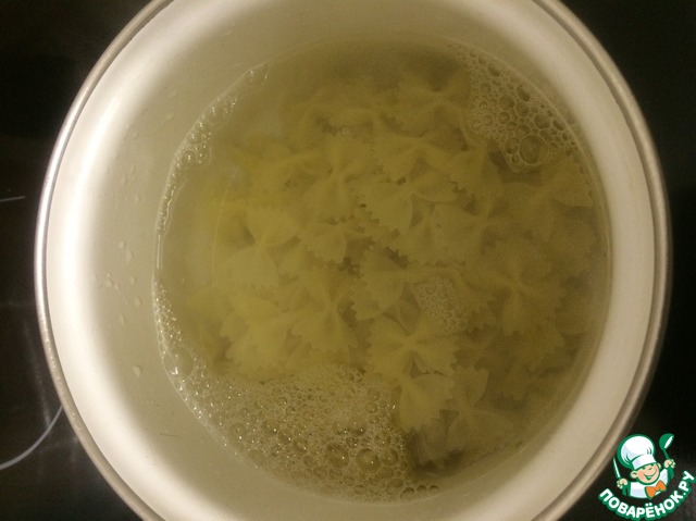 Макаронные изделия засыпать в кипящую, подсоленную воду и варить до готовности.
