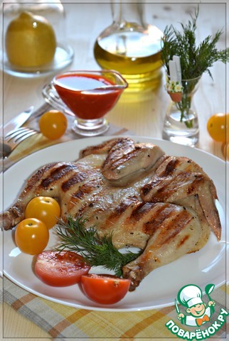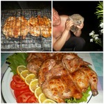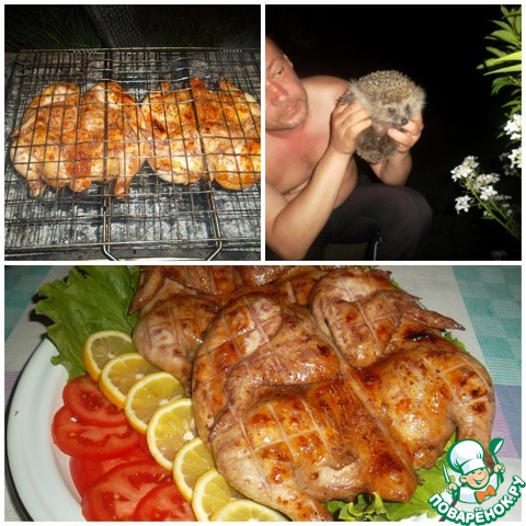 А вот если Вы живете в той местности, где вовсю цветут крокусы и мышиный гиацинт, или вообще не бывает зимы, то предлагаю Вам - разжечь угли, дать им хорошенько прогореть и подернуться белым пеплом. Смазать маслом решетку, цыплят уложить на решеточку кожей вниз и жарить 25-30 минут, смазывая маринадом, затем перевернуть и жарить еще 10 минут.