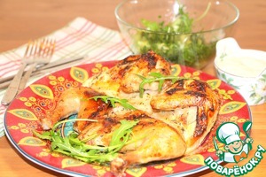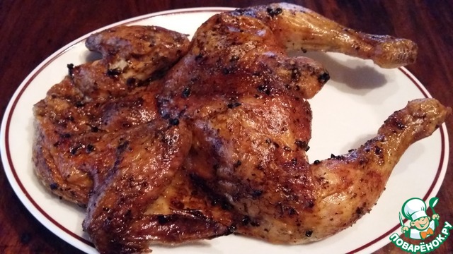 Минимум ингредиентов,столько же прилагаемых усилий.НО! Максимум вкуса и удовольствия от дегустации. Нежная,сочная,ароматная курица. Рецепт-сказка! Спасибо большое,Светуля. (готовила на электрогриле,поэтому вот такой полосатый цыпленок-арестант получился )