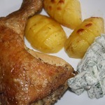 • Подавать цыплят очень горячими с салатом из овощей и соусом из йогурта с мятой.