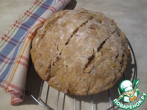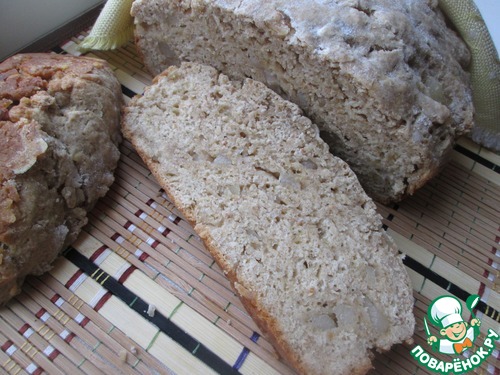Сытный, ароматный, с влажным мякишем хлеб быстрого приготовления, на разрыхлителе, с использованием разных видов муки, но, увы, совсем не диетический. Хотя, если откорректировать количество добавок, его можно заметно " облегчить ". Рецепт из книги " Ссобойки " Ю. Высоцкой.