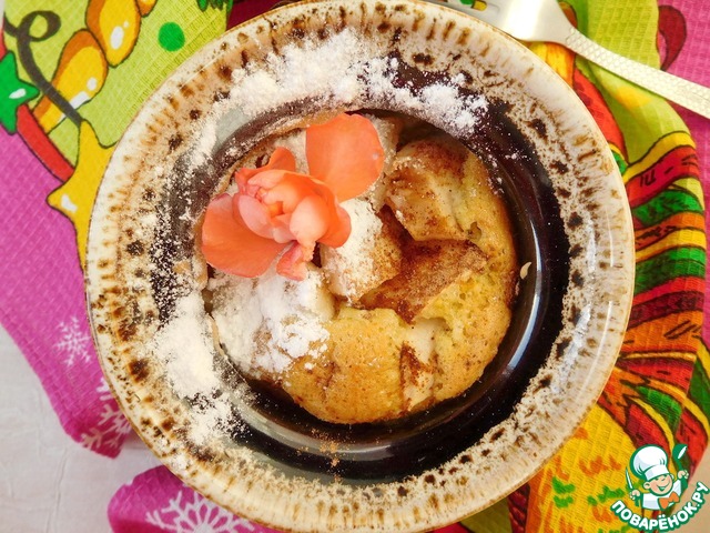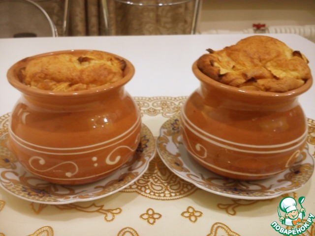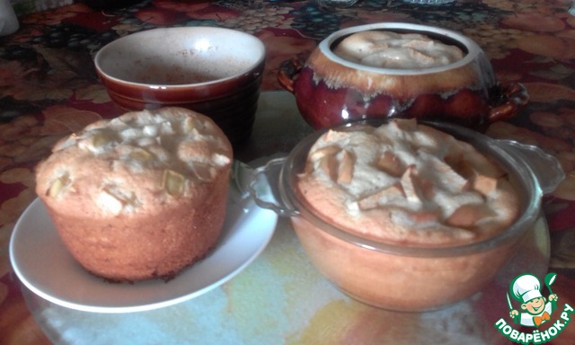 Про такую подачу, всеми любимой, шарлотки мне рассказала подруга, увидев ее в интернете. Естественно меня это не могло не заинтересовать, так как десерт в горшочках, я еще не подавала. Результат приятно порадовал))) Лично у меня сразу же исчезла такая проблема, как недопеченная середина в классической шарлотке (вот не всегда получается, хоть что делай)))