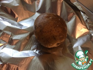 1. Моем картофель, обсушиваем и заворачиваем плотно в фольгу и отправляем в духовку в жаропрочной форме для запекания примерно на 1 час при 180 градусах. -