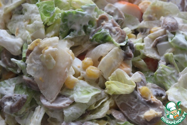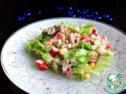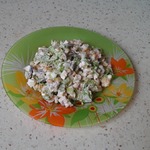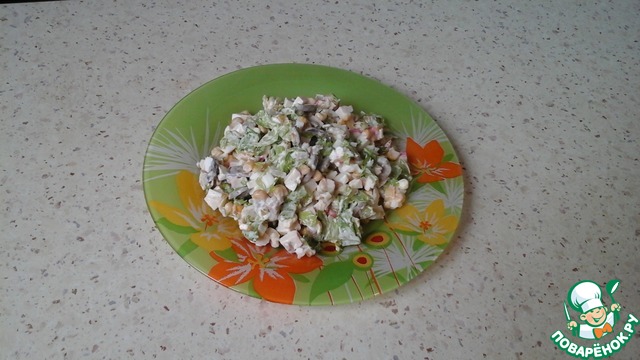 Свежий, нежный, сливочный салат. Сытный, но не тяжелый. Очень гармоничный и приятный во всех отношениях. Угощайтесь!